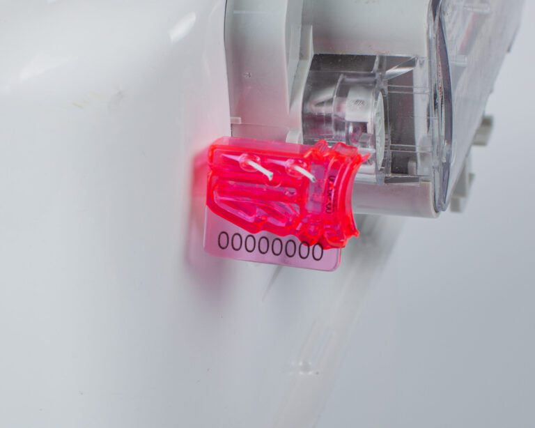 The Rubin anchor seal is transparent, and can be made in several colours. The visibility of the locking mechanism and wire rope during operation makes it easy for users to check their security and integrity. The seal insert has a convenient sealing head that makes it easy to close the seal and protects against attempts to affect or change the seal. If someone tries to penetrate or manipulate with the Rubin tamper evident anchor seal, you can see signs of it.